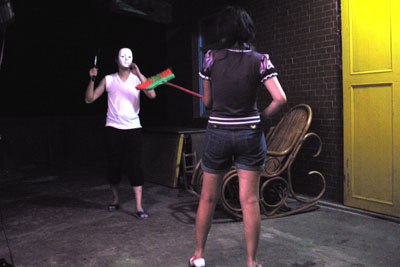 兩女尋聲前去探看,卻看到老闆拿著刀在宰什麼東西,鮮血亂噴,兩女以為老闆是變態,拼命抵抗。